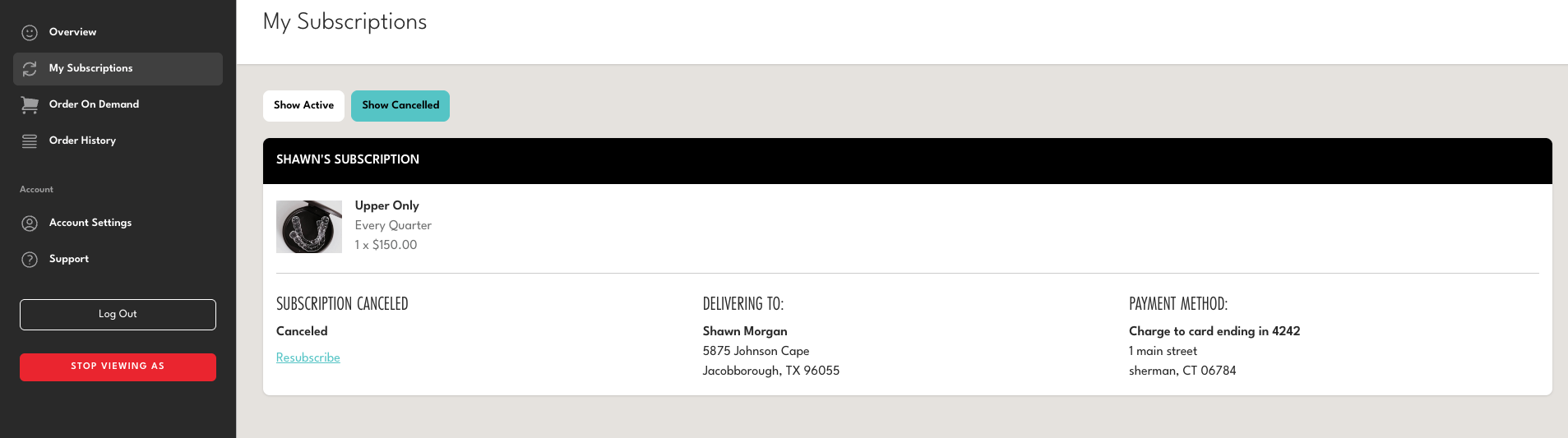 - The canceled subscriptions will populate > click 'Resubscribe'